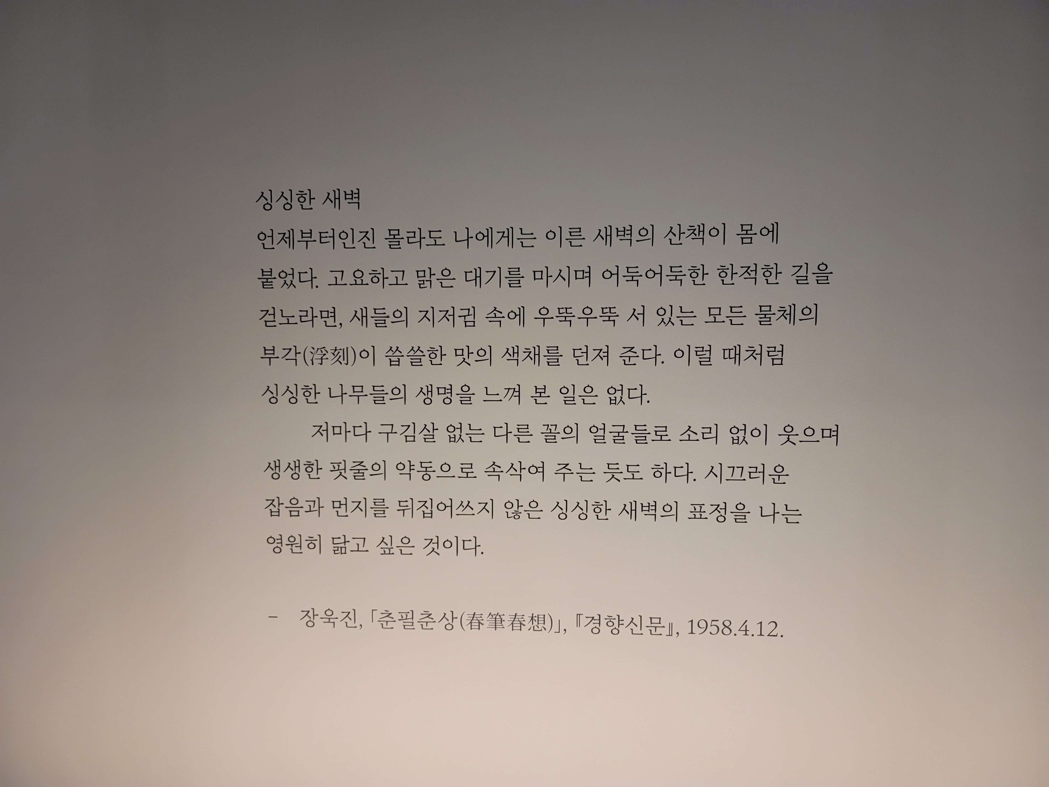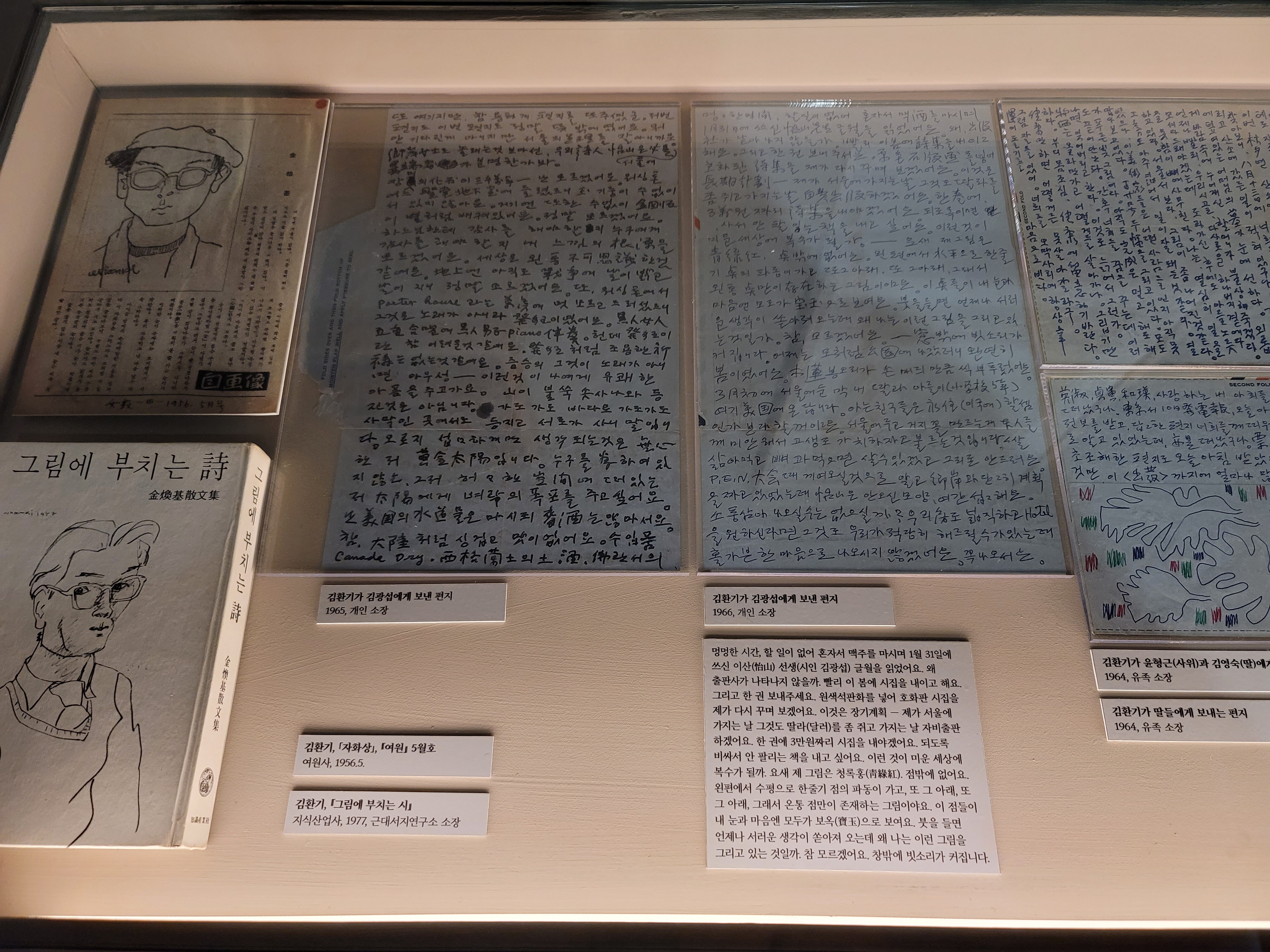 엽서 3장을 홀린 듯 사고 별관, 달관까지 잘 보고 나왔다. 수향산방에 있던 김향안, 파리의 추억도 너무 좋았다. 향안과 수화의 시간들이 전해지는 듯했다. 모든 생활이 예술적임에도 자기만의 세계를 이뤄낸 예술가는 특별한 존경심을 자아낸다. 숙명을 감내하고 필연적으로 이른 아름다움이 감동을 주면서도 서글플 정도로 아득했다. 그럼에도 나름의 삶과 '시정신'을 잘 가꿔야겠다는 다짐으로 하루를 갈무리했다.